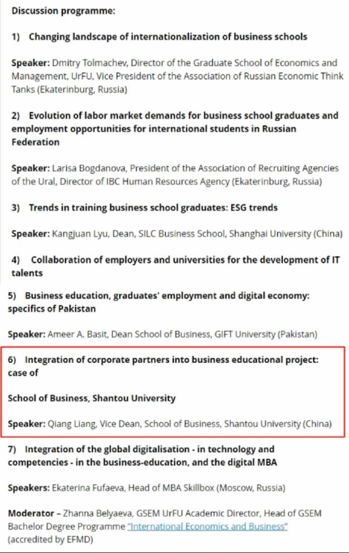 Professor Qiang Liang discussed with business education experts and scholars from all over the world, shared academic views and practical cases. It has strengthened the communication between our school and foreign institutions and laid a solid foundation for seeking future international exchange and cooperation.