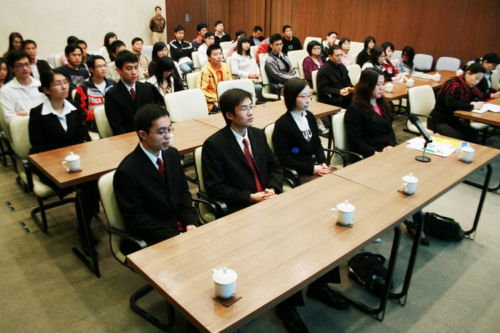 The session was chaired by Prof. Wang Wei and Secretary Chen Motian made briefly speech. He encouraged this anticipation would expand our international perspective and strengthened the international exchange. Then Liu Zhenjie introduced the basic information about his teammates and the questions they met in the first round. He said that on 7th sep 2008 Mai Bangkok Business Challenge @Sasin invited our school to take part in the challenge and our college formed 3 teams. At last, only black soil and his teammates Liu Zhenjie, Gu Liang, Chen Ting and Xiang Xunyong successfully entered the semi-finals.