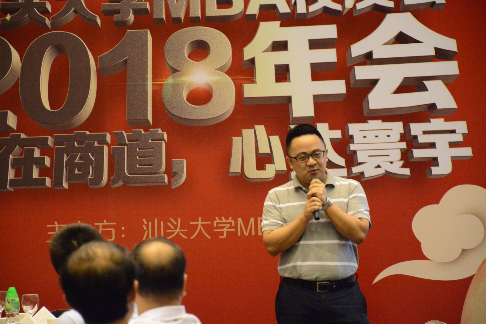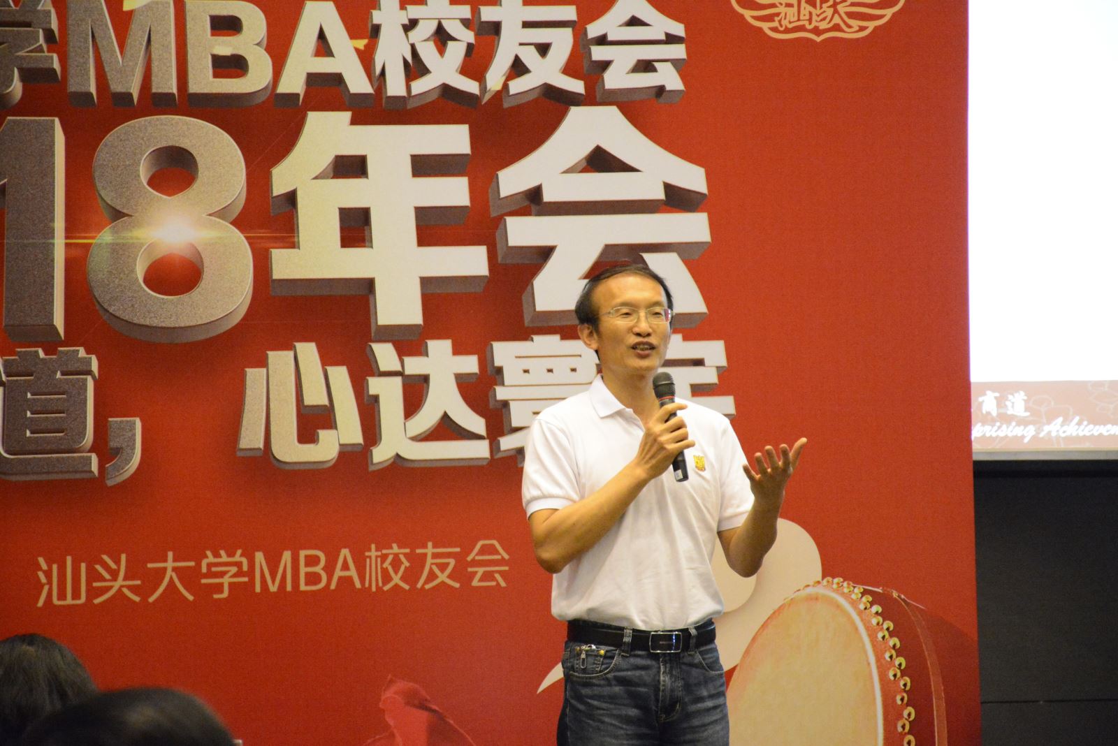 嘉宾致辞结束后,现场循环播放着汕大MBA以往活动的照片和视频合集,大家看到身边熟悉的身影,回忆起在校读书期间的点点滴滴。毕业后久违的员工同老师们围坐在一起,畅谈着以往的趣事,也各自表达了对MBA的深情和愿景。