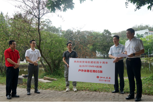 本次汕大2010级员工捐赠的65张户外休憩石凳,全面更新公司人工湖周边的石凳,将推动汕大校园基础设施建设,进一步改善校园环境,为在校师生、员工们提供更多学习、休闲的“打卡点”、“网红点”。
