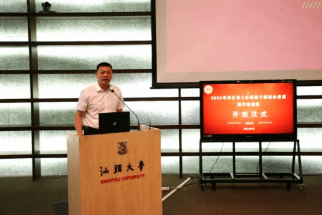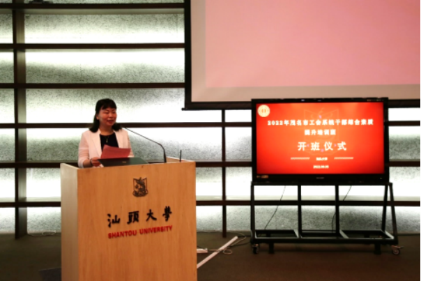 In the morning of September 5th, 2022, the opening ceremony of the "2022 comprehensive quality improvement training course for cadres of workers’ federation system in Maoming" was held in the lecture hall of Shantou University Library, which was organized by MBA Education Center of Business School Shantou University.Hong Yu, Standing Committee Member of the Party Committee and Vice President of Shantou University, Huang Yiyi, Deputy Director of the Standing Committee of the People's Congress of Maoming City, Secretary of the Party Group and Chairman of the General Workers’ Federation, and Chairmen of Workers’ Federation of all districts and counties in Maoming City attended theopening ceremony. The opening ceremony was hosted by Qiang Liang, Vice Dean of Business School Shantou University.