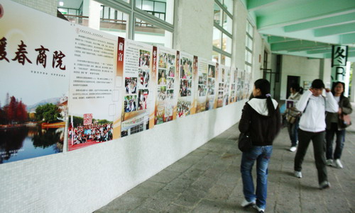 On 4th mar, 2009, General Party Branch of Business School, Youth Council, Young Volunteers Association held “the warm spring Photo exhibition” in library. The exhibited photos included several activities in 2008: "A gang of one" helping the poor student activities, Lei Feng in March on a street of urban services, Disaster Relief performances, Amenities civilized persuasion, Series Events for the deaf School, love with the marrow, the peaceful Christmas Eve.