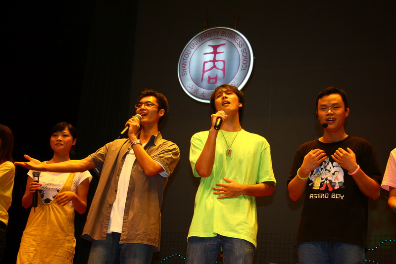 A welcome ceremony for new students-"Pearl of the South China Sea" was held in the auditorium at Sat 7:30 p.m. September 27, 2008. This ceremony was co-organized by the general party branch, the Communist Youth League Committee, Student Union of Business School. Principal Assistant Prof. Lin Danming, Dean of Business School Prof. Xu Zongling and Chair Professor Xu Erming as honored guests were invited to present the ceremony, as well as leader and student representatives of other schools of STU.