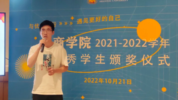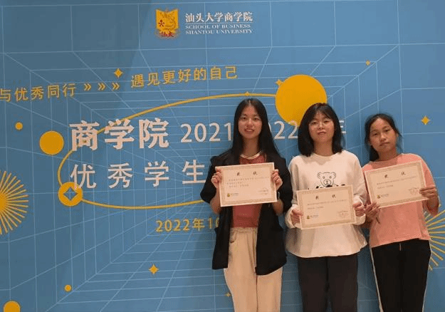 In order to commend the advanced, establish the typical, and further promote the high-quality development of our students' work, Business School held an award ceremony for the outstanding students in 2021-2022 in the conference room of the Academic Exchange Building on October 21, 2022. Hong Yu, Vice President of Shantou University, Zhibo Zou, Secretary of the Party Committee of Business School, and Bingdian Su, Deputy Secretary of the Party Committee of Business School, attended this event.