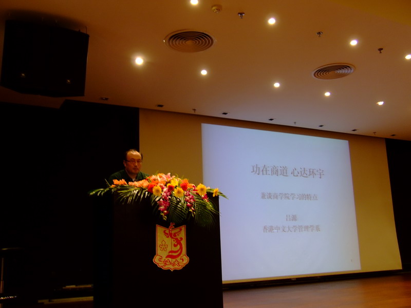 Finally, Prof. LV Yuan from The Chinese University of Hong Kong gave a speech with the theme of Enterprising Achievement and Global Mindset. Prof. LV explained the characters of study in Business School based on the teaching and learning in the business subject. He mentioned that only students with professional specialty, mature personal character, healthy body and leadership can be good students. In the end, the opening ceremony was finished in the warm applause.