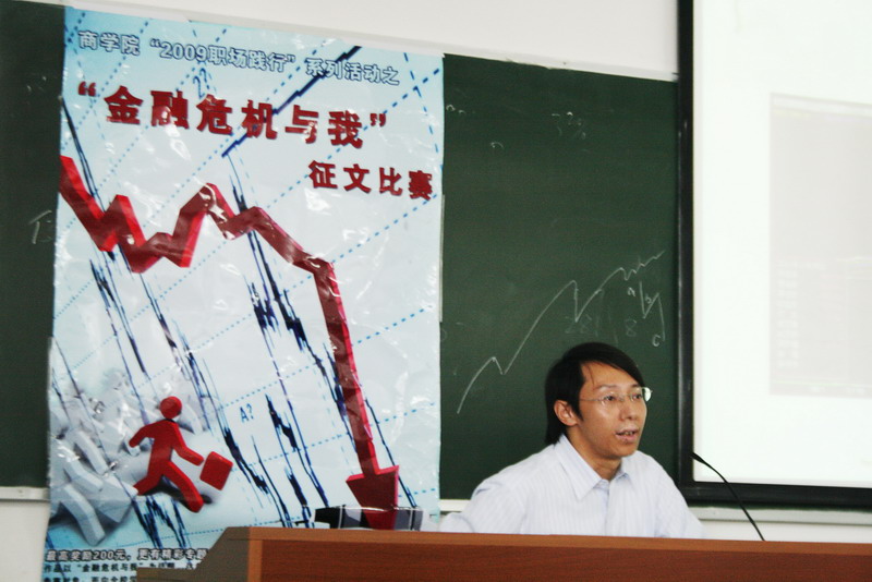 In March 2008, the editorial department of in Business School planned the "2009 workplace practice" series of activities: "The Financial Crisis and Me" Essay Competition. During this activity, the editorial department invited the related teachers to hold lectures to stimulate thinking.
