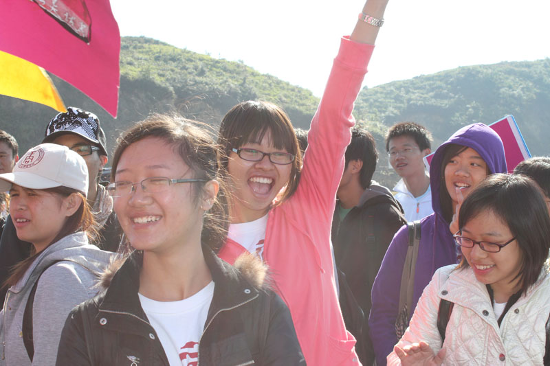 Taking a short break after nearly 3 hours of bus ride, the first activity on site was mountain climbing. The picture-perfect scenic views along the journey uphill, including stretching mountain range, orderly terraced tea gardens and mountainside golf course, kept students busy with their cameras. Attractions towards the end of the route added surprises with gorgeous fading green water of the Qingren (lovers) Lake and the barren Huoyan (Flaming) mountain which reminded the climbers of the stories in the classical Chinese literature 'The Journey to the West'.