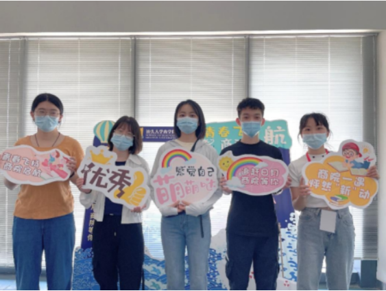At the check-in point, the college has prepared photo frames for new students to take pictures. Whether it is the message and welcome message such as "Youthfulness is flying, business school is setting sail", "Catching up with the sun and moon, business school is waiting for you", or the interesting hand-held placards such as "Business school meets, thumping 'new'", all of them are filled with the expectations of the college staff and students for the new students' arrival, hoping to preserve the memory and warmth, excitement and joy of the new students of the class of 2022 at the first moment of their arrival through photos.