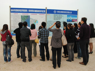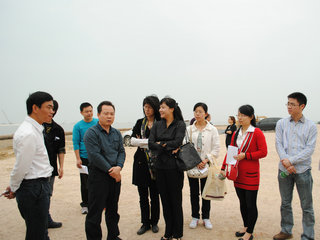 At the construction site of the Development Zone, General Secretary Zhang of Shantou Municipal Committee explained to the visitors the current progress of the construction and river regulations in the Xin Jin and Wai Sha rivers.