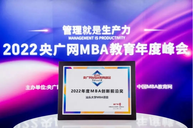School of Business Shantou University MBA program won the "2022 MBA Innovation Frontier Award". Prof. Liang Qiang, dean of Business School and director of MBA Education Center, was awarded the "2022 Business Education Influencer".