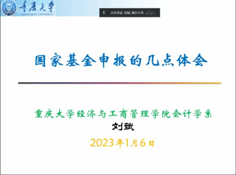 On January 6th, academic salon of School of Business (Phase III) on the declaration of the national natural science fund of China was successfully launched online. Professor Jia Shanming, an associate researcher at the Economics School Jinan University, and Professor Liu Bin from the Economics and Business Administration School Chongqing University were invited to the salon. In the beginning, Guo Gongxing, vice dean of Business School delivered a welcome speech. Associate Professor Chen Mingqin, director of the Finance and Accounting Research Center grandly introduced guests, Lu Jiye, Wen Riguang, and other more than 100 teachers and students participated, and the forum was chaired by Associate Professor Chong Zhaohui, director of the Institute for Taiwan Studies.