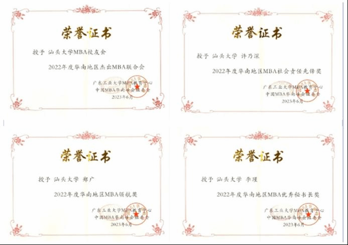 · Outstanding MBA Alumni Association in the South China Region for 2022: Shantou University MBA Alumni Association