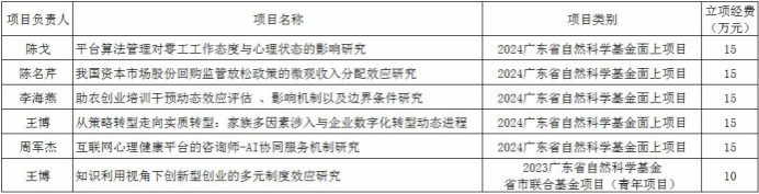 Recently, the funding of various projects for the 2024 annual Natural Science Foundation of Guangdong and the joint provincial-municipal fund projects for 2023 has been announced. Our school is pleased to have secured funding for six projects, including five general projects and one project for youths. Further details are as follows: