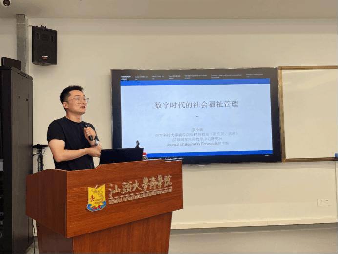 最后,南方科技大学李少波副教授做主题报告《以数字时代的社会福祉营销》,深度剖析数字时代背景下的营销变革,分享如何巧妙借助数字技术,使产品与服务紧密贴合社会发展需求,实现经济效益与社会效益的双赢。李少波副教授的分享为到场师生们打开了研究思路和方向,使大家获益良多。