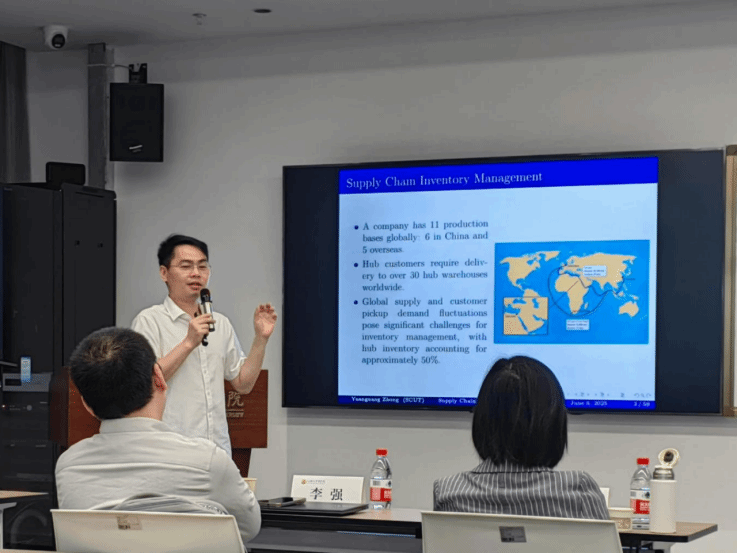 随后,华南理工大学工商管理公司二级教授钟远光教授带来了《非稳态环境下的供应链库存管理》的主题报告。钟教授针对当前企业面临的需求不确定性增加、产品生命周期缩短、供应风险上升等挑战,深入探讨了非稳态环境下的库存管理策略。钟教授以跨境电商和液晶显示器生产企业为例,分析了需求预测不准、库存积压、供应链提前期变长等问题。他介绍了自己团队在鲁棒优化模型和数据驱动决策方面的研究成果,提出了基于分布鲁棒优化(DRO)的库存补货模型,以及考虑产能不确定性的生产网络优化方法。钟教授强调,在非稳态环境下,企业需要从传统的基于预测的库存管理模式转向数据驱动的动态调整模式,提高供应链的韧性和响应速度。