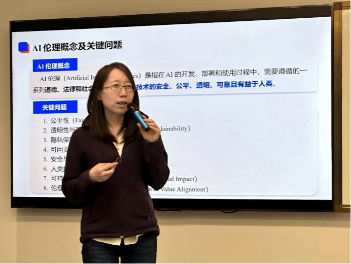 讲座伊始,张教授以“铁皮人”隐喻人工智能提高效率但可能丧失人文关怀的现象,结合算法歧视、数据偏见等案例,指出当前AI发展在公平、责任与透明性方面面临的挑战。张教授进一步梳理了AI伦理研究在消费者信任、员工协作、企业责任及环境影响等多维度上的进展,并展望了AI未来在技术可控、包容性治理及中国实践等领域的研究方向。