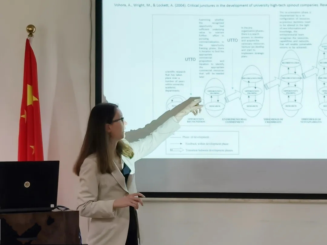Anna博士分享结束后,来到Q&A问答环节。在座的师生都对Anna博士研究表示感兴趣,老师员工们环座在一起针对该研究的进行发言交流。Anna博士也非常有耐心的回答问题,解释与研究相关的细节。Anna博士的讲座,分享了创新管理与学术创业研究领域最前端的研究,对师生的学术研究具有深刻的意义。