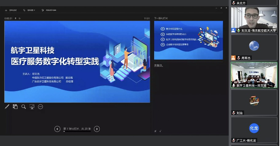 第三场报告由广东航宇卫星科技有限公司总经理邓文浩主讲,主题为“医疗服务的数字化转型实践”,该报告从经验总结、医院数字化转型的动力、航宇卫星科技医疗数字化转型实践以及企业数字化转型的注意事项四个方面展开。报告中强调“数字化转型”是对一个相对比较完整的全业务流程进行重塑,而非简单的技术升级。新医改政策的实施带来的巨大运营压力催动传统医院数字化转型,航宇卫星科技先行先试,与伟德国际唯一官网入口第一附属医院合作,目前已经在互联网医院平台、处方流转平台、医院动力管家、医院设备管家、医用耗材SPD等方面进行了实践,对医院的全业务流程进行升级改造,推动其降本增效进程。最后邓文浩总经理还提到企业参加数字化转型的若干注意事项,呼吁广大科技企业积极承担社会责任,协助医院回归诊疗主业,让医疗真正地惠及民生。