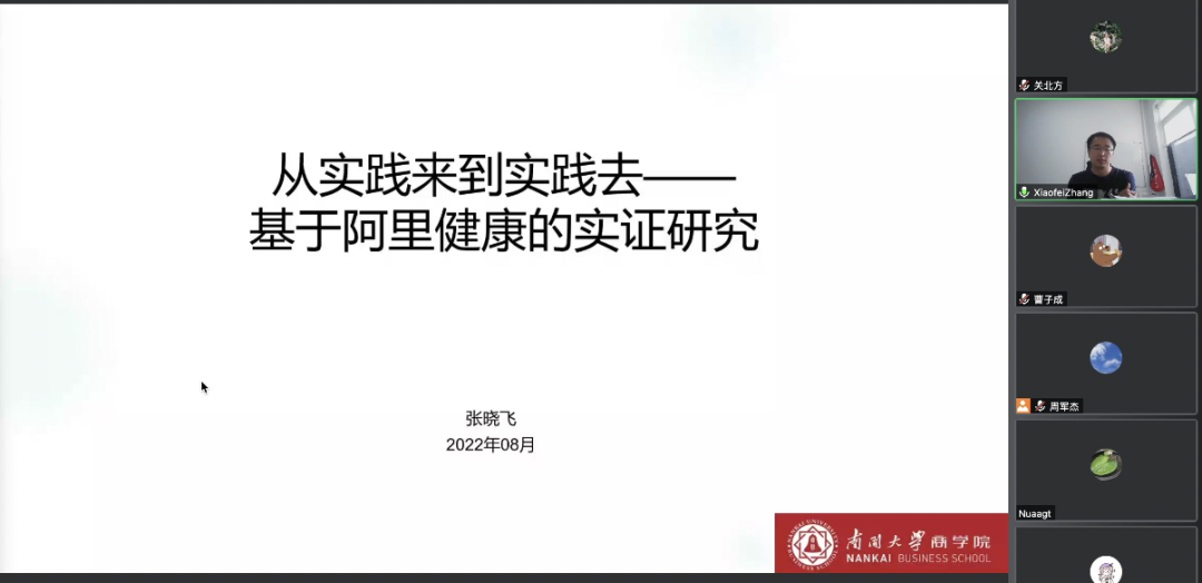 第六场报告由南开大学bevictor伟德官网副教授张晓飞主讲,主题为“从实践来到实践去——基于阿里健康的实证研究”的报告。张晓飞副教授介绍了互联网医疗的交互过程及时代背景下互联网医疗的优势及存在的问题,从问题入手,分别从医生激励、患者获取和医患交互三个视角展开三个调研模块,对互联网平台运营的系列问题进行了深入的探究,为解决阿里健康等互联网医疗app运营中的实践问题提供参考。最后,他详细介绍了这一系列研究的实践过程及成效,向大家展现了真正的“将论文写在祖国的大地上”。