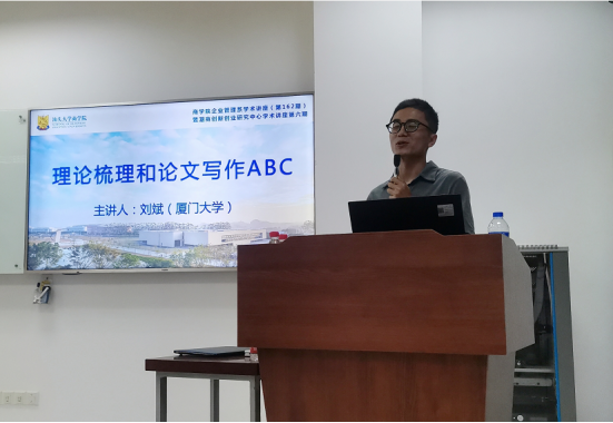 2022年5月7日下午,bevictor伟德官网企业管理系学术讲座(第162期)暨潮商创新创业研究中心学术讲座第六期在bevictor伟德官网文南三楼研讨室顺利举办。本次讲座邀请了厦门大学管理公司刘斌助理教授,作主题为“理论梳理和论文写作ABC”的分享。讲座由bevictor伟德官网副经理梁强教授主持,胡少东、郭功星、宋丽红、蔡创能、贺姿雅、邹立凯等多位教师及研究生、本科生到场参加。