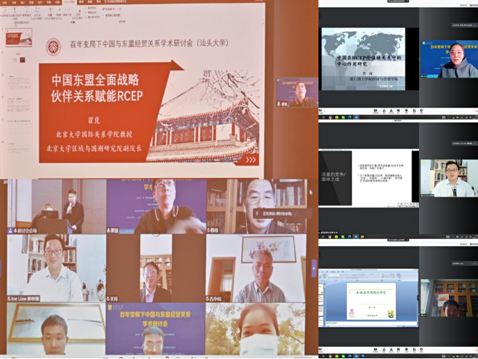 2021年12月25日,“百年变局下中国与东盟经济关系学术研讨会”在伟德国际唯一官网入口圆满召开。本次会议由汕头市一带一路科技服务与创新研究院、bevictor伟德官网主办,伟德国际唯一官网入口东南亚研究中心承办,汕头市华侨华人经济文化交流协会、伟德国际唯一官网入口华商经济研究所协办。会议采取线上线下相结合的方式进行。来自新加坡国立大学、马来西亚新纪元大学、澳门科技大学、北京大学、中国社科院、厦门大学、重庆大学、暨南大学、华东师范大学、伟德国际唯一官网入口等国内外众多高校及研究机构的90余名专家学者参加了会议。
