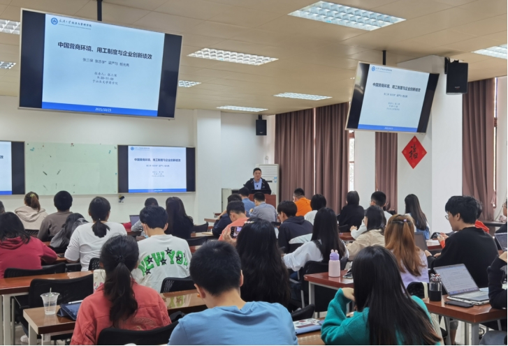 张三保副教授作了主题为“中国营商环境、劳动用工制度与企业创新绩效”的精彩报告,首先,回顾新中国成立以来劳动用工制度的历史沿革,系统梳理用工“双轨制”形成及存续的多层原因,并基于相关理论提出研究假设。随后,他选取了世界银行对中国25个城市2458家企业的调查数据,实证考察中国法治和政策环境、用工“双轨制”与企业创新绩效三者间的关系,以及企业国有资产份额的调节效应。得出的研究结论包含劳动法律监管、地方政府干预会提高企业使用用工“双轨制”,用工“双轨制”与企业创新绩效之间呈倒U型关系,用工“双轨制”在劳动法律监管、地方政府干预分别与企业创新绩效之间的关系中起到中介作用等。