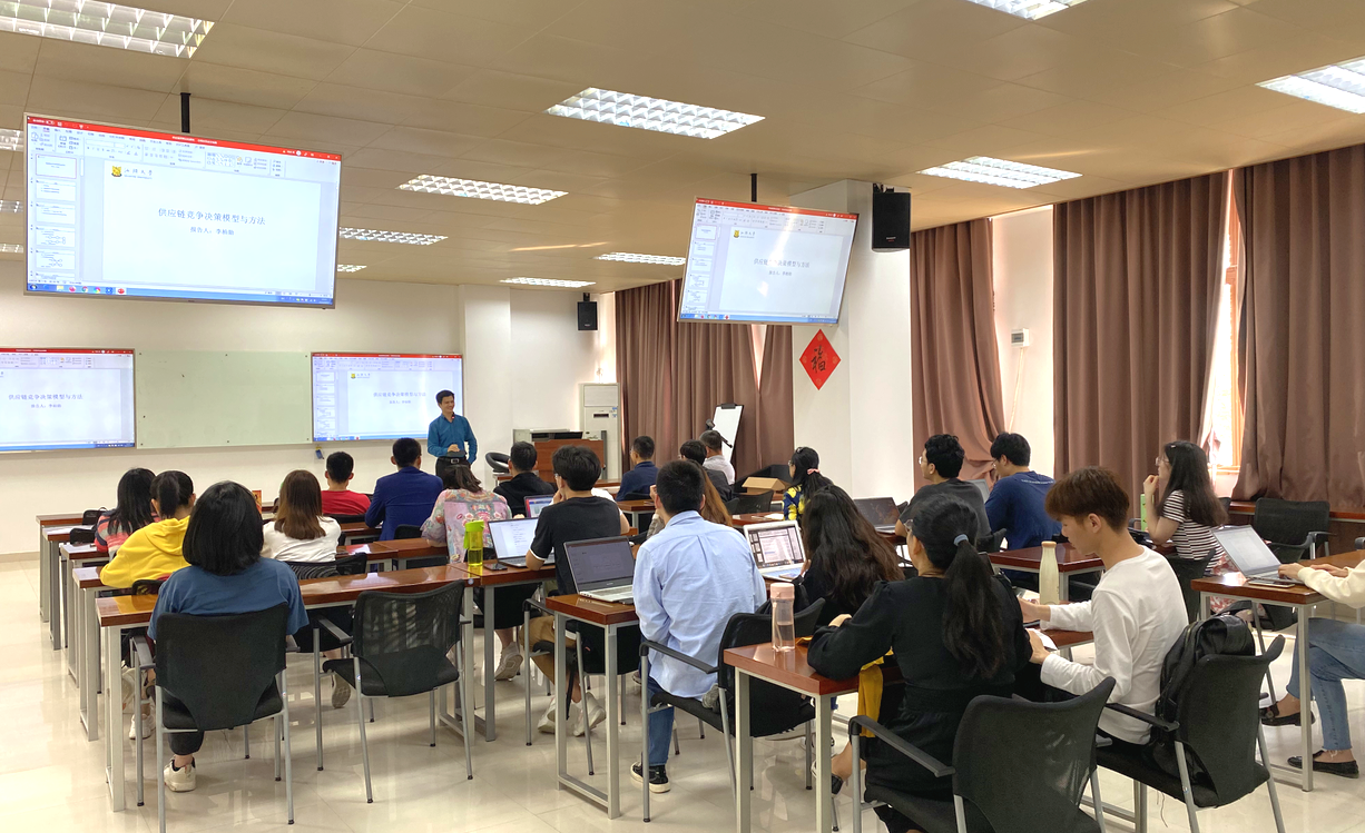 学术分享结束,李柏勋老师围绕参会师生提出的问题做了详细解答,与参会师生一起对供应链竞争决策模型与方法进行了更加深入的探讨,现场互动气氛热烈。本次讲座在热烈掌声中落下帷幕。