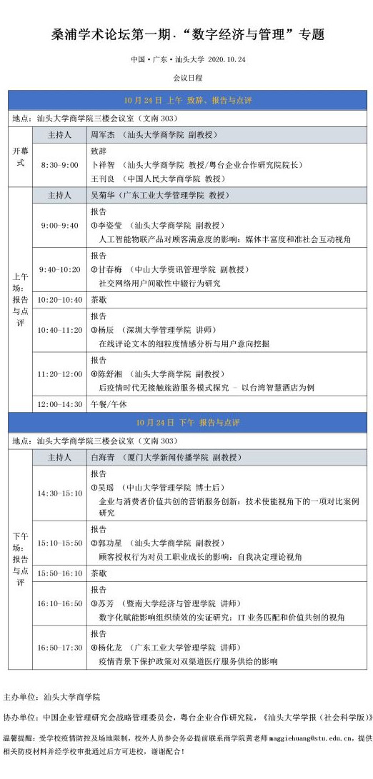 献礼40周年校庆bevictor伟德官网系列活动:桑浦学术论坛第一期·“数字经济与管理”专题