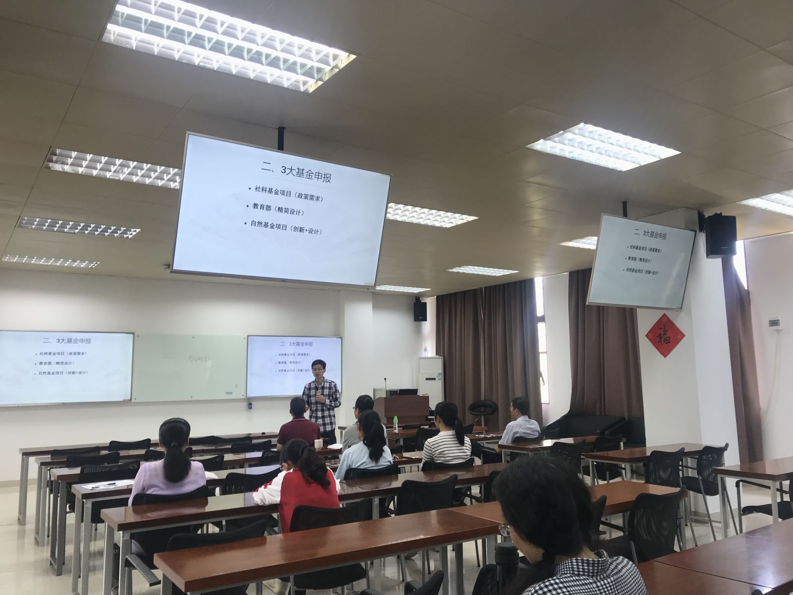 在本次讲座中,郑文智教授向与会教师分享了自己的科研心路历程,并结合自己申报课题的经历,为与会教师介绍了社科基金项目、教育部、国家自然基金项目的申报技巧与注意事项。在讲座的最后环节,郑文智教授与老师们就项目申报的相关问题进行了热烈的讨论,对老师们的提问进行了详细的解答。本场讲座在热烈掌声中圆满结束。