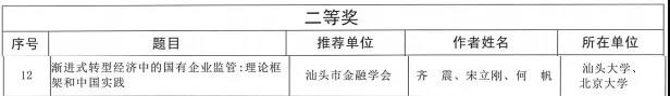 公司齐震老师与他人合作撰写的论文《渐进式转型经济中的国有企业监管:理论框架和中国实践》荣获本次评选中论文类作品二等奖。