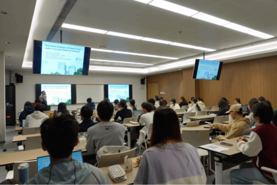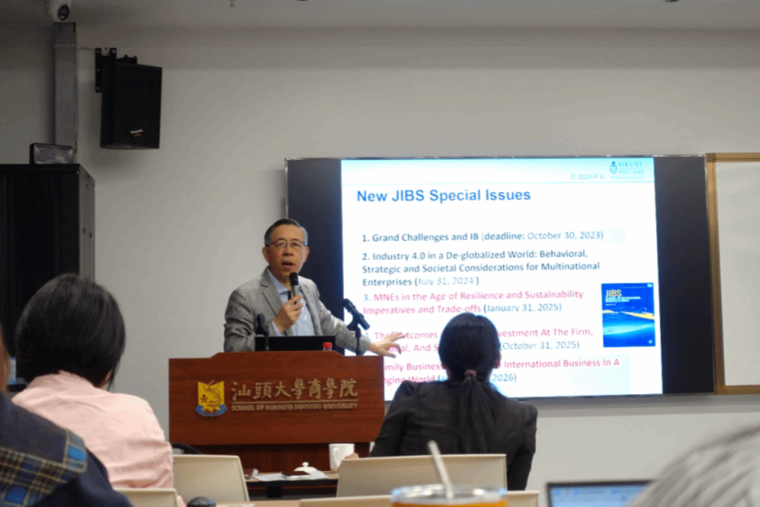 讲座伊始,李家涛教授以新兴市场战略与国际商业研究的趋势及方向为切入点,深入剖析了全球化与去全球化带来的复杂影响,阐述了国际商务与数字经济深度融合的现状,探讨了新兴市场企业在科技竞争中的战略抉择以及家族企业国际化等核心议题。同时,李教授还围绕这些研究主题,详细介绍了 JIBS(Journal of International Business Studies)期刊正在征稿的特刊主题,为在场师生提供了前沿的研究动态与方向。