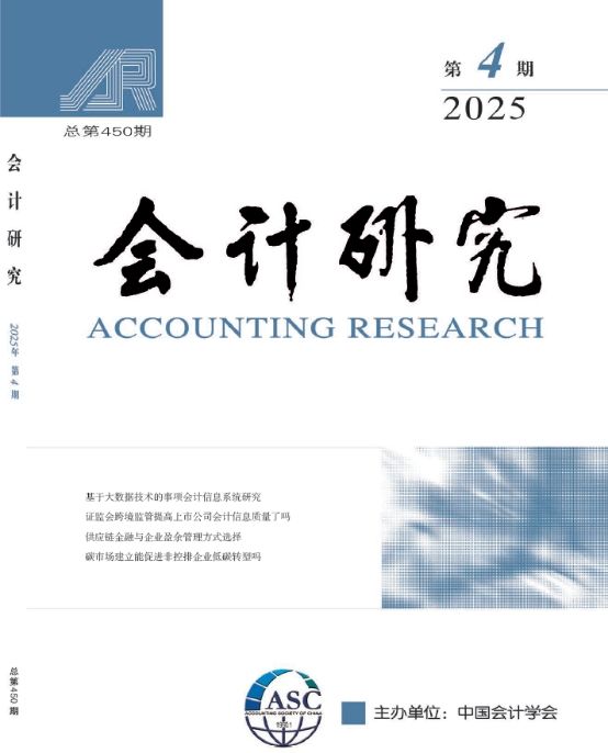 《会计研究》是财政部主管、中国会计学会主办的国家一级学术期刊,是国家自然科学基金委员会确定的管理科学A类重要期刊,是CSSCI来源期刊中唯一的会计类学术期刊,是学术界公认的会计学权威期刊。刊物紧密结合中国经济和社会发展的实践,突出学术前瞻性、政策指导性和现实针对性,致力于推动会计理论的繁荣和发展,已经成为集中反映我国高质量会计研究成果的学术平台。2023年度《会计研究》复合影响因子为9.315,期刊综合影响因子为5.283。